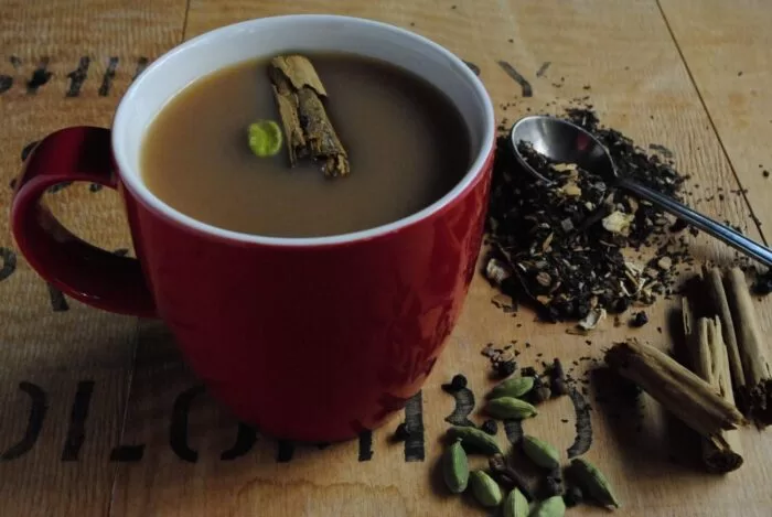 - Sobre leche caliente se añade té chai, que también debe estar muy caliente.